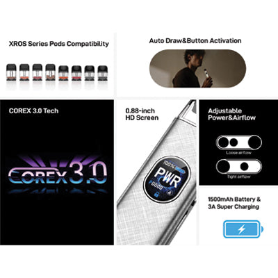 Empowered by COREX 3.0 Tech, it provides users with a more constant and stable a richer aroma reproduction, delicate flavour, and smoother vaping experience. It has a 1500mAh battery and supports 3A Super charging. Adjustable power and airflow allow for customization, and the 0.88-inch HD Screen display with six different colourful themes provides users with fun interactive enjoyment.